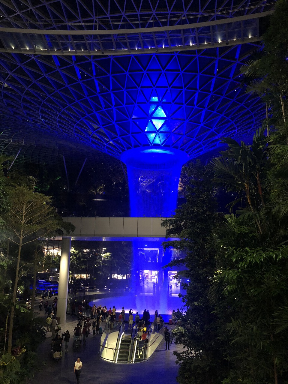 シンガポールの新しい空港ターミナル すごい滝が空港内に