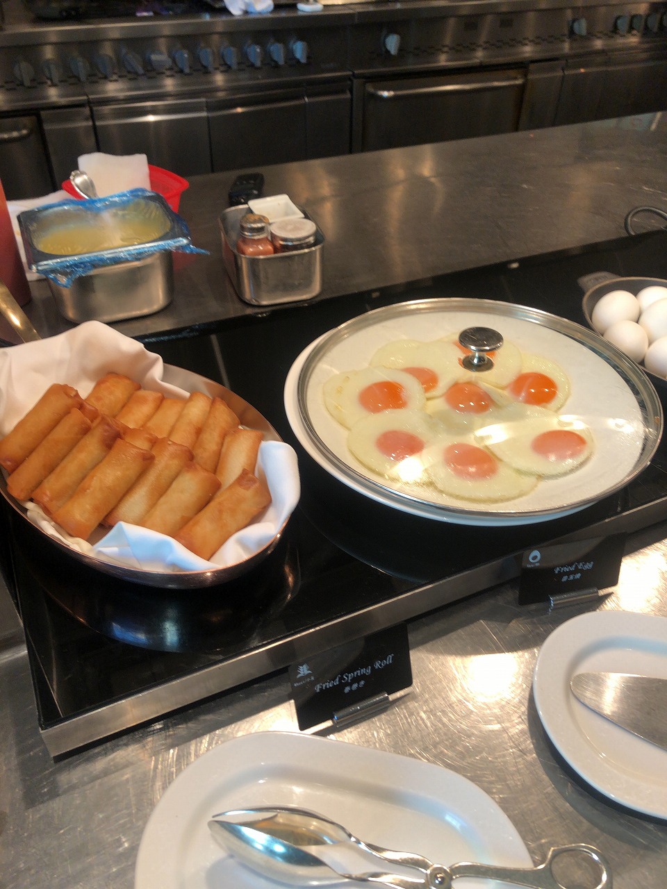 どれも新鮮で大変美味しかったです。バフェで食べるのにくわえ、ミックスオムレツをたのみ、デザートではヨーグルトとデザートをたっぷりいただきました。大変優雅なお食事でございました。